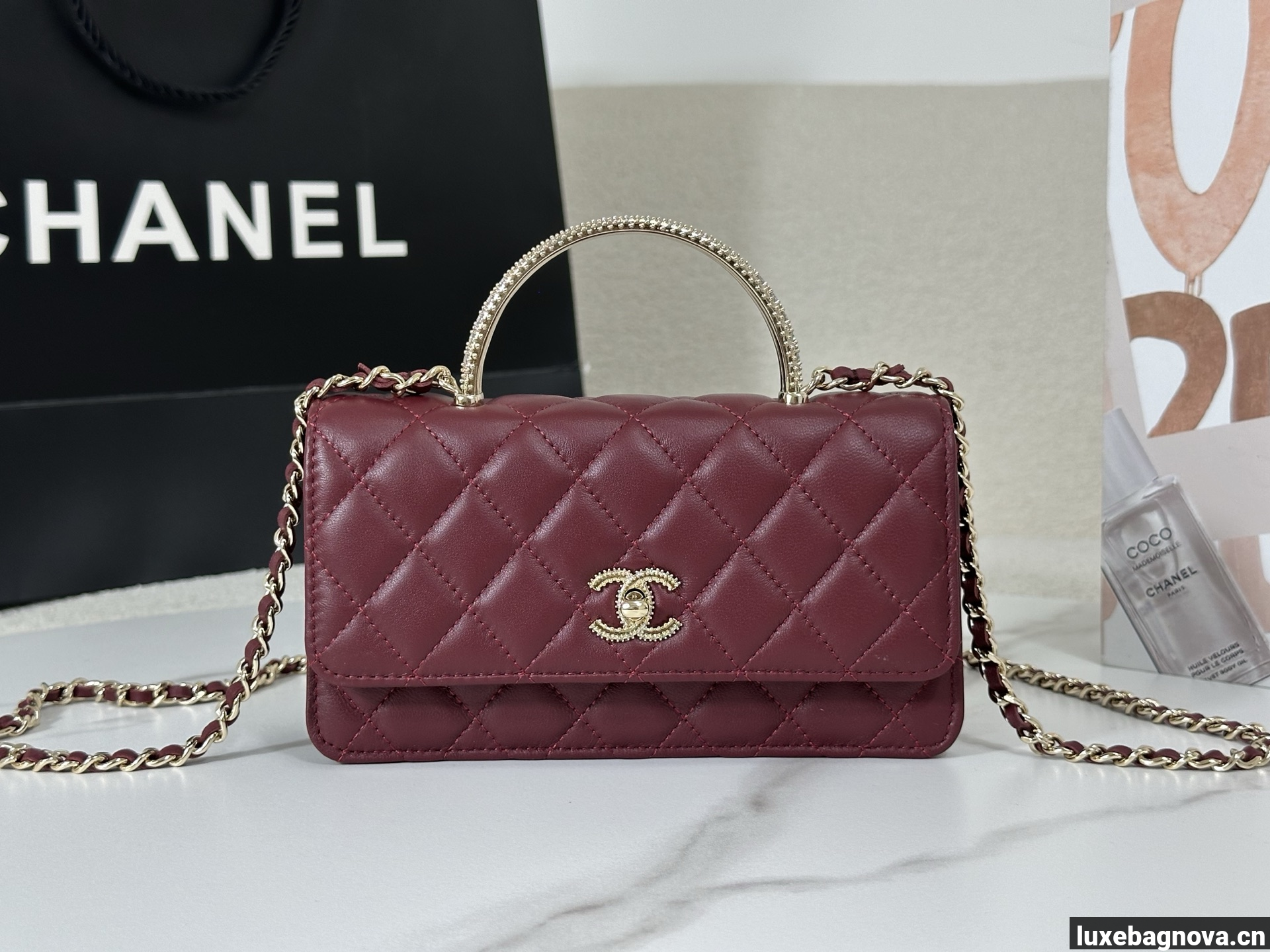 :: Chanel Lambskin Quilted Pick Me Up Wallet On Chain WOC Burgundy