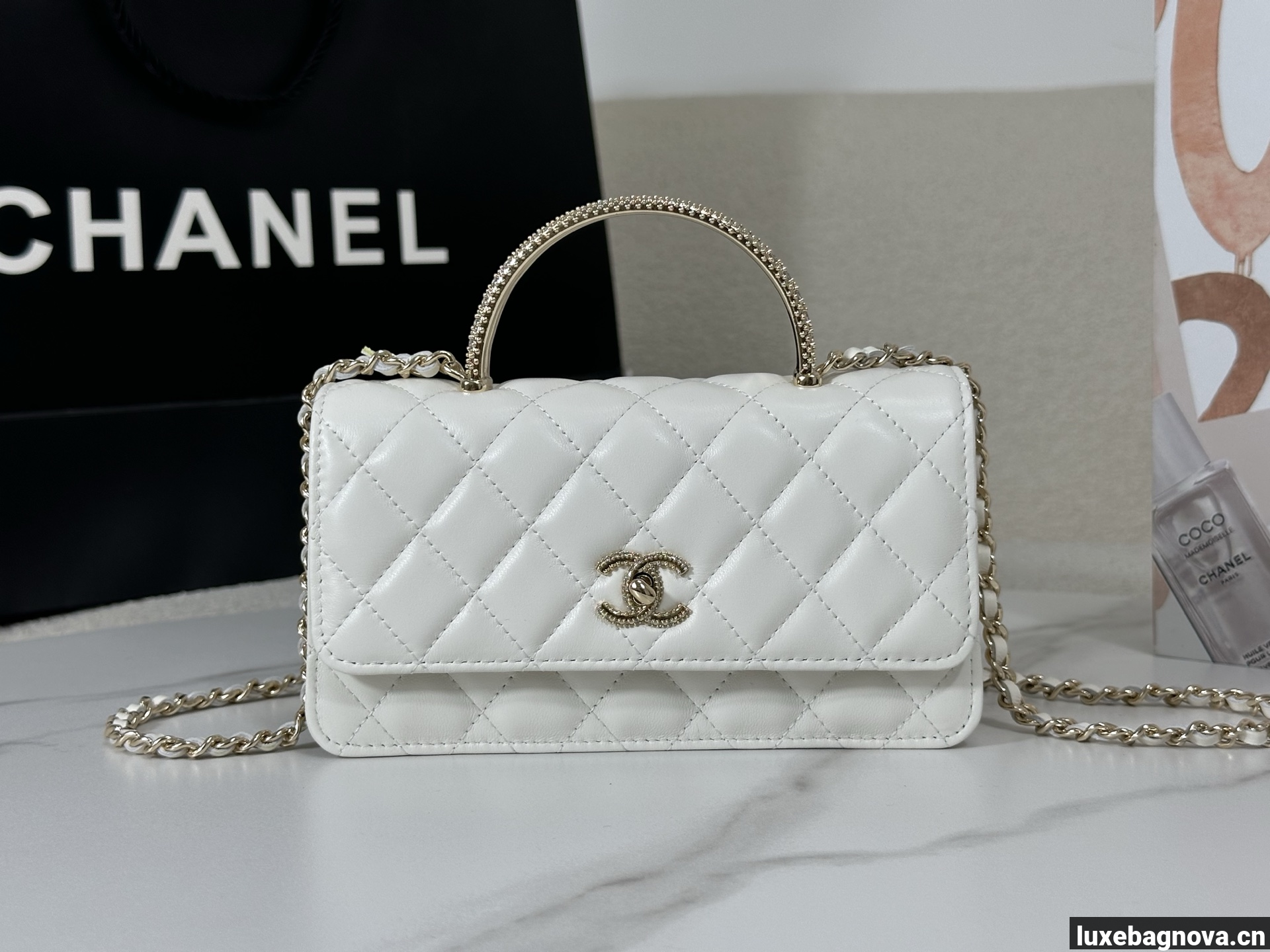 :: Chanel Lambskin Quilted Pick Me Up Wallet On Chain WOC White