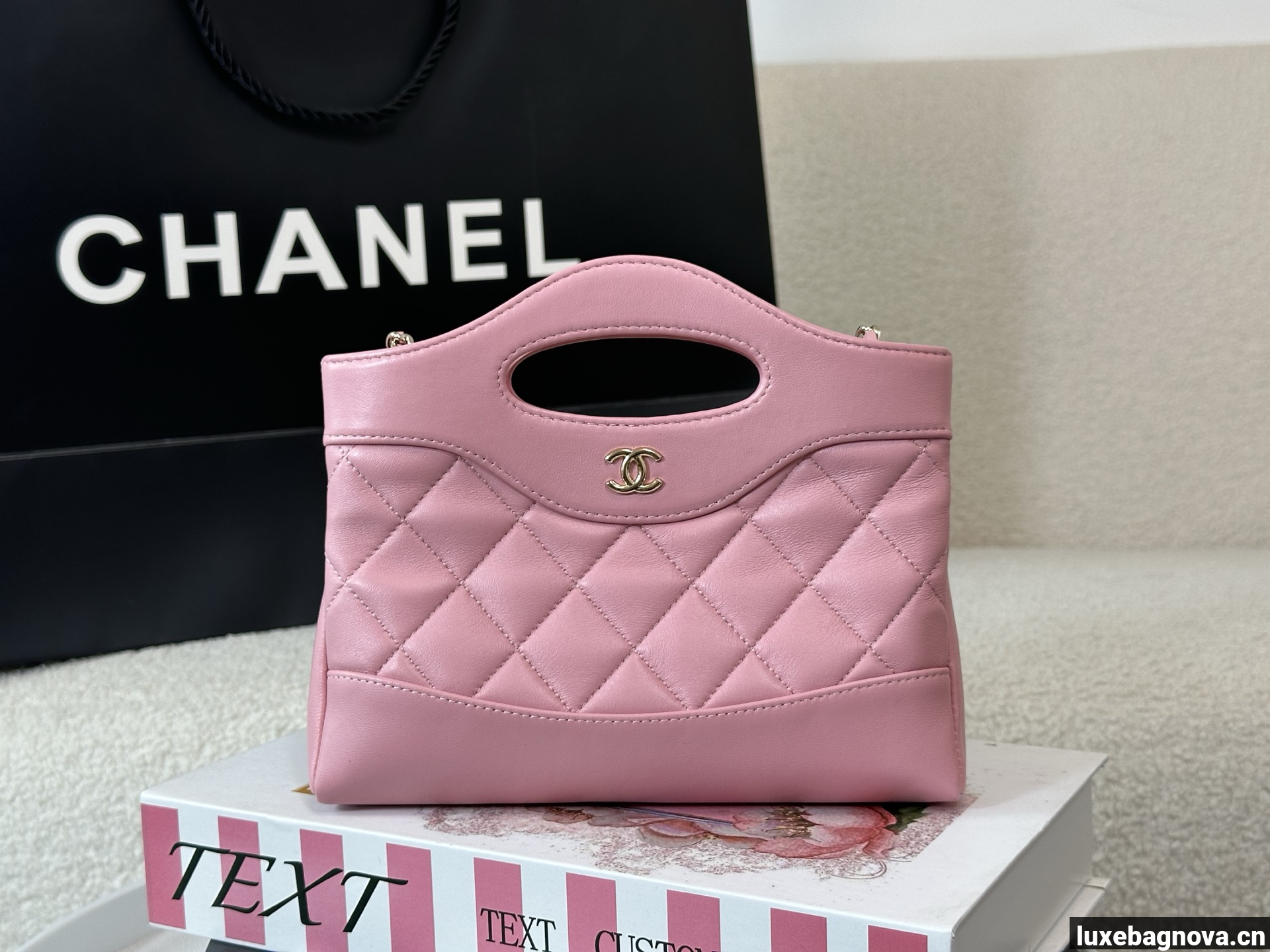 Chanel Pink quilted leather mini tote bag with chain shoulder strap