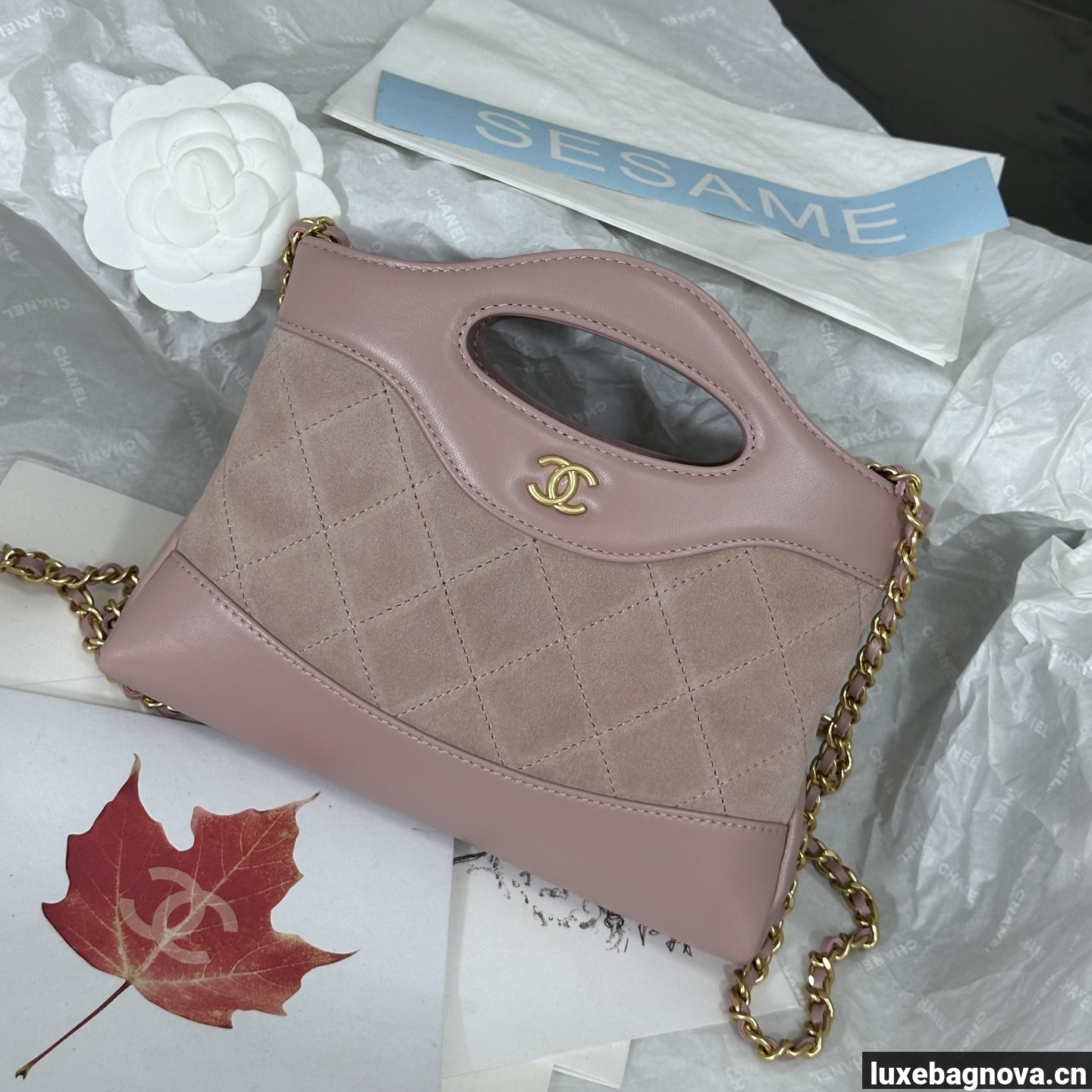 Chanel Light Pink quilted leather mini tote bag with chain shoulder strap