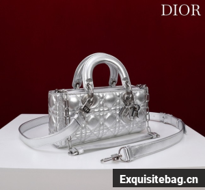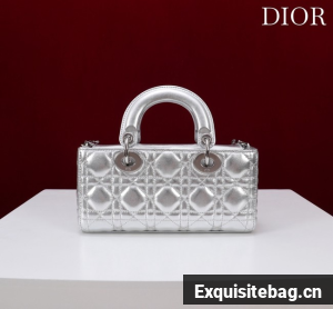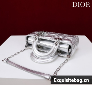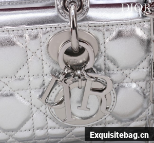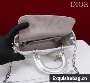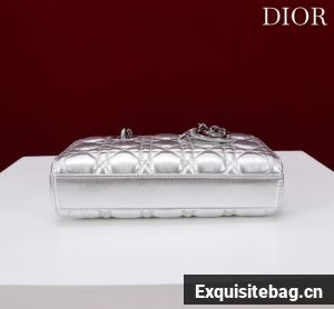 :: Dior Small Lady D-Joy Bag Silver-Tone Metallic Cannage Calfskin M0613
