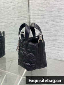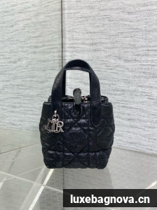 Dior Toujours Vertical Nano Tote Bag Macrocannage Calfskin S6100 black & Silver