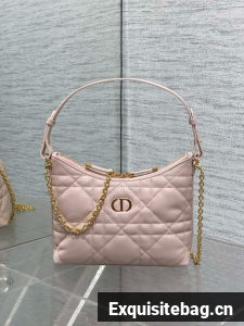Miss Caro Diorling Mini Bag with Chain Powder Pink Macrocannage Lambskin S5253U