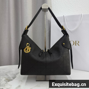 Medium Dior Voyage Bag Black Flat Macrocannage Grained Calfskin M2846UJ