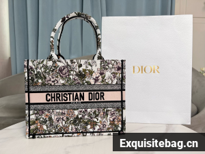 :: Medium Dior Book Tote Pink Multicolor D-Floral Embroidery M1296ZECZ