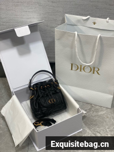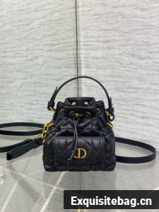 :: Dior Caro Nano Bucket Bag Macrocannage Lambskin S5250 black