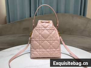 Small Dior Caro Bucket Bag pink Macrocannage Lambskin M3372UNOZ