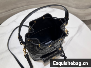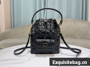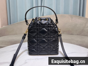 :: Small Dior Caro Bucket Bag Black Macrocannage Lambskin M3372UNOZ