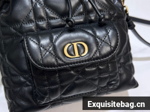 Small Dior Caro Bucket Bag Black Macrocannage Lambskin M3372UNOZ