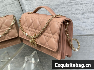 Lambskin and technical fabric liningFront D.I.O.R. charmsFlap closureTwo interior compartmentsRear slip pocketThree card slotsLeather top handleRemovable jewel chainMade in ItalyDimensions: 21 x 11.5 x 4.5 cm / 8.5 x 4.5 x 2 inches (Length x Height x Width)The size is suitable for a phone, a card holder and lipstickChain length: 110 cm / 43.5 inchesChain drop length: 51 cm / 20 inchesWeight: 400 g / 14 ouncesSize and weight details may vary depending on the product"s materialReplica Dior Comes with dust bag, authentication cards, and pamphlets.