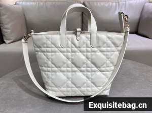 Medium Dior Toujours Vertical Tote Bag Macrocannage Calfskin M2836OSNW Latte