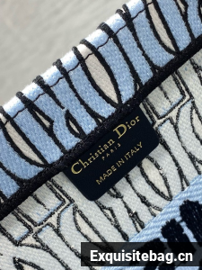 Introduced by Maria Grazia Chiuri, Creative Director of Christian Dior, the Dior Book Tote has become a staple of the Dior aesthetic. Designed to hold all the daily essentials, the pale blue style is fully embroidered with the collection"s hallmark black Miss Dior Allover motif, inspired by the Marc Bohan for Dior archives in a modern take on the 1960s. Adorned with the Miss Dior Graffiti signature on the front, the medium tote exemplifies the House"s savoir-faire and may be carried by hand or worn over the shoulder.