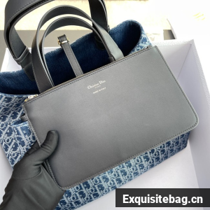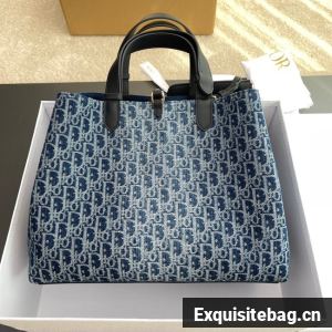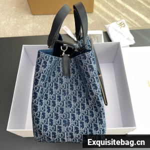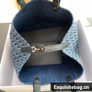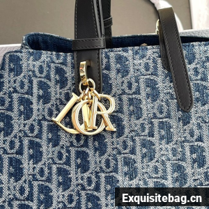 Large Dior Toujours Bag Blue Denim Dior Oblique Jacquard M2820OD