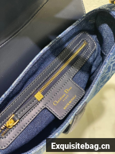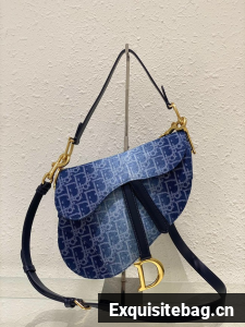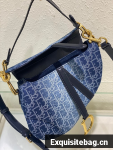 Maria Grazia Chiuri gives a fresh update to the iconic Saddle bag. The blue style is constructed in Denim Dior Oblique jacquard, offering a new take on the iconic House motif with the modern appeal of an irregular stonewashed effect. Its legendary design features a Saddle flap with a D stirrup strap and magnetic pull, as well as an antique gold-finish metal CD signature on either side of the handle. Equipped with a thin strap that is both adjustable and removable, the Saddle bag can be carried by hand, worn over the shoulder or crossbody.