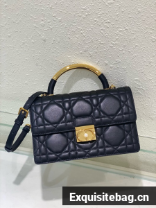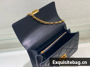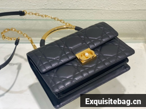 New for Fall 2024, the Dior Ange bag embodies the new House line with a resolutely modern and elegant aesthetic. Constructed in black calfskin with Macrocannage stitching, it is distinguished by its structured top handle in antique gold-finish metal engraved with the Christian Dior Paris signature and its flap with a CD clasp embellished with a resin pearl. The gusseted silhouette reveals two spacious compartments, a zip pocket and two slip pockets to hold all the essentials. Adorned with an adjustable and removable CD link chain in gold-finish metal accented by resin pearls, the medium refined bag can be carried by hand, worn over the shoulder or crossbody.