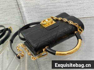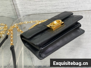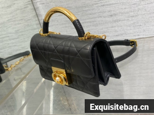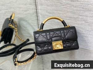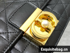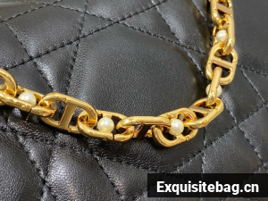 New for Fall 2024, the Dior Ange bag embodies the new House line with a resolutely modern and elegant aesthetic. Constructed in latte calfskin with Macrocannage stitching, it is distinguished by its structured top handle in antique gold-finish metal engraved with the Christian Dior Paris signature and its flap with a CD clasp embellished with a resin pearl. The gusseted silhouette reveals two spacious compartments and a slip pocket to hold all the essentials. Completed by an adjustable and removable CD link chain in gold-finish metal accented by resin pearls, the miniature refined bag can be carried by hand, worn over the shoulder or crossbody.