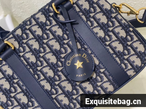 New for Fall 2024, the D-Vibe bowling bag has a streamlined and modern silhouette. Constructed in blue Dior Oblique jacquard adorned with tonal leather details, it stands out with a leather key holder engraved with the Christian Dior Paris signature and a gold-finish star. The attached key opens the zipper padlock to reveal a spacious compartment that can accommodate all the essentials, completed by a slip pocket and a zip pocket. Featuring leather top handles and an adjustable, removable strap, the practical medium bag can be carried by hand, worn over the shoulder or crossbody.