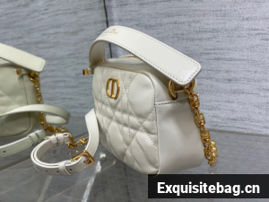 :: Small Dior Caro Top Handle Camera Bag Latte Macrocannage Calfskin M3352U