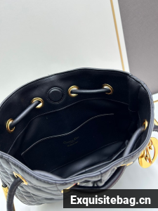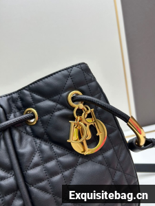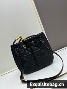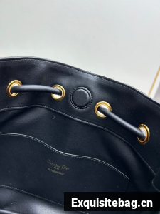New for Fall 2024, the Dior Nolita bag redefines House codes of modern elegance with a refined and contemporary silhouette. The black Macrocannage lambskin is complemented by structured top handles embellished with antique gold-finish metal, as well as sliding D.I.O.R. charms which lend a touch of movement. The drawstring closure reveals a practical interior with a slip pocket, while the adjustable and removable leather strap allows the medium bag to be carried by hand, worn over the shoulder or crossbody.