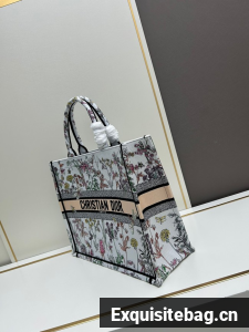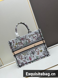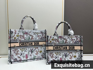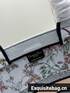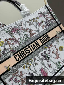 :: Large Dior Book Tote white Multicolor Dior Herbarium Embroidery M1286ZE
