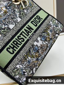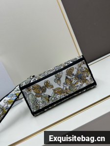 MEDIUM LADY D-LITE BAG White and green Butterfly Around The World Embroidery M0565O