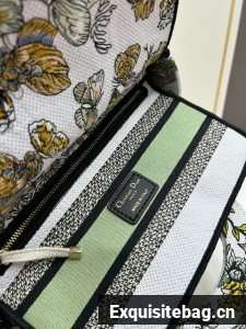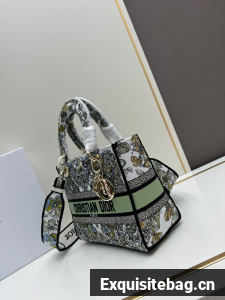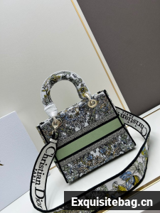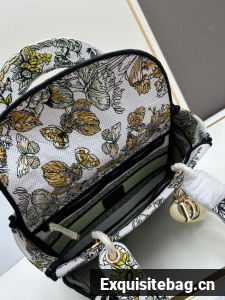 :: MEDIUM LADY D-LITE BAG White and green Butterfly Around The World Embroidery M0565O