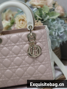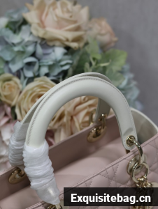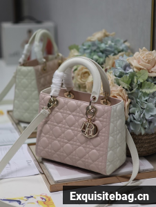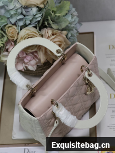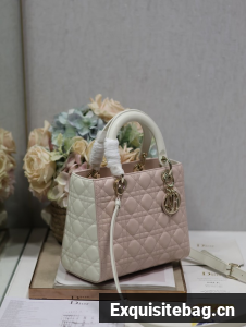 :: Medium Lady Dior Bag Latte and Powder Pink Cannage Calfskin M0565OWR
