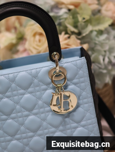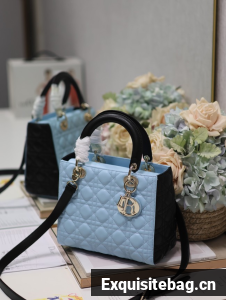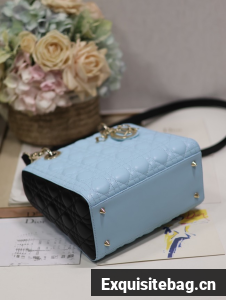 :: Medium Lady Dior Bag Sky Blue and Steel Gray Cannage Calfskin M0565OWR