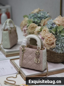 Mini Lady Dior Bag Two-Tone Latte and Powder Pink Cannage Lambskin M0505ONI