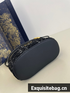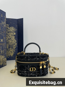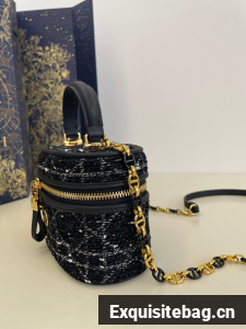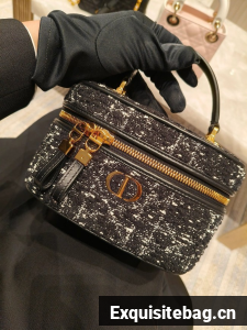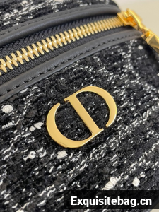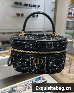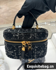 Dior Caro Mini Vanity Case Black Cannage Tweed S5198U