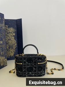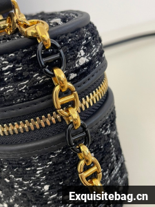 :: Dior Caro Mini Vanity Case Black Cannage Tweed S5198U