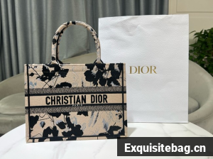 Presented at the Spring-Summer 2024 Fashion Show, the Dior Book Tote — designed by Maria Grazia Chiuri, Creative Director of Christian Dior — has become a staple of the Dior aesthetic. Designed to hold all the daily essentials, the style is fully embroidered with the beige and black Fleurs Mystiques motif, a hypnotic and poetic floral motif. Adorned with the Christian Dior Paris signature on the front, the medium tote exemplifies House savoir-faire and may be carried by hand or worn over the shoulder.