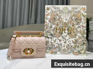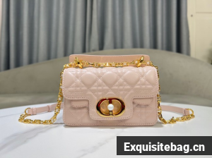 New for Summer 2024, the Dior Jolie Top Handle bag presents an elegant and functional design. It is crafted in powder pink calfskin with Cannage stitching and features a flap enhanced by a CD signature embellished with a white resin pearl, as well as two compartments and a zip pocket to accommodate all the essentials, day or evening. The removable top handle is completed by a detachable chain strap with a leather insert and CD signature links embellished with white resin pearls, allowing the miniature bag to be comfortably carried by hand, worn over the shoulder or crossbody.