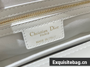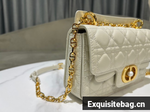 New for Summer 2024, the Dior Jolie Top Handle bag presents an elegant and functional design. It is crafted in latte calfskin with Cannage stitching and features a double flap enhanced by a CD signature embellished with a white resin pearl, as well as three compartments and a zip pocket to accommodate all the essentials, day or evening. The removable top handle is completed by a detachable chain strap with a leather insert and CD signature links embellished with white resin pearls, allowing the small bag to be comfortably carried by hand, worn over the shoulder or crossbody.