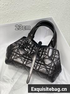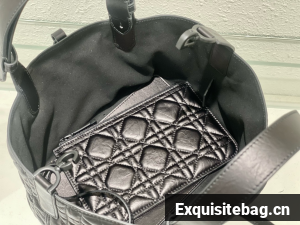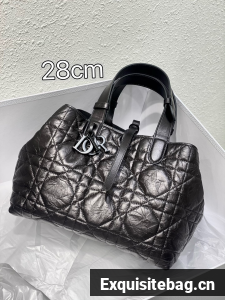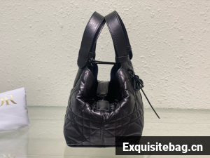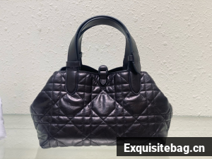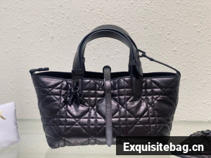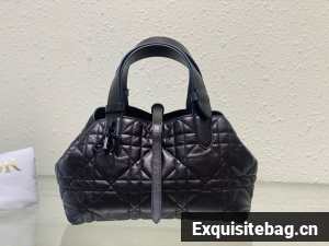 The Dior Toujours bag is distinguished by a casual and practical design. Crafted in black crinkled calfskin with Macrocannage topstitching, it showcases a spacious interior compartment with a matching pouch to organize the essentials. Its leather strap closure keeps items secure while the D of the CD Lock closure twists to adjust the sides and enhance the bag"s silhouette. The leather handles can be adjusted using the small notches in order to be able to carry the medium bag by hand or wear it over the shoulder.