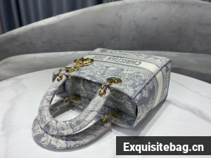 The Lady D-Lite bag combines classic elegance with House modernity. The style is fully embroidered with the blue Toile de Jouy motif. The front features a Christian Dior Paris signature while the thick D.I.O.R. charms in pale gold-finish metal enhance the silhouette. Equipped with a wide, reversible and removable embroidered shoulder strap, the medium Lady D-Lite bag can be carried by hand or worn crossbody.Christian Dior Paris signature on the frontWide removable shoulder strapInterior zip pocketLarge patch pocketThe bag may be paired with the House"s different embroidered strapsDust bag includedMade in ItalyDimensions: 24 x 20 x 11 cm / 9.5 x 8 x 4.5 inches (Length x Height x Width)The size is suitable for a wallet, a phone, a card holder and sunglassesStrap length: approximately 105 cm / 41.5 inchesDrop length: approximately 55 cm / 21.5 inchesWeight: approximately 930 g / 33 ouncesReplica Dior Comes with serial numbers, authenticity card, dust bag and care bookle.