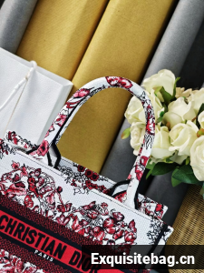 :: SMALL DIOR BOOK TOTEWhite and Red Le Coeur des Papillons Embroidery M1296ZRf
