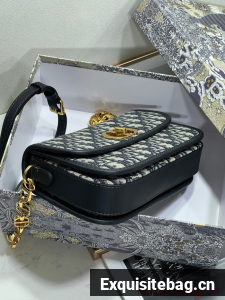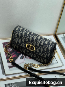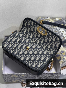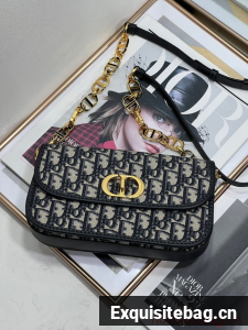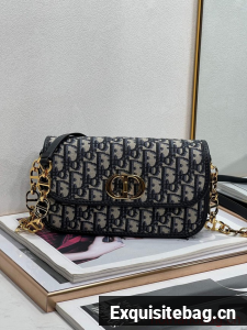The 30 Montaigne Avenue bag enhances the hallmark line with a timeless and elegant style. Crafted in blue Dior Oblique jacquard, the rounded flap with delicate curves is punctuated by an antique gold-finish metal CD clasp inspired by the seal of a Christian Dior perfume bottle. The design is completed by other details, like the 30 Montaigne signature embossed on the back and the signature chain alternating gold-finish metal and tonal enamel links that match the leather. The gusseted bag features a spacious and refined silhouette that can be carried by hand, worn over the shoulder or crossbody.