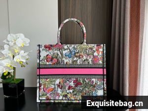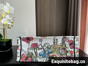 :: LARGE DIOR BOOK TOTE White Multicolor Mexico Millefiori Embroidery M1286ZES