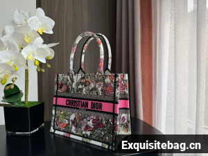 :: SMALL DIOR BOOK TOTE White Multicolor Mexico Millefiori Embroidery M1296ZRf