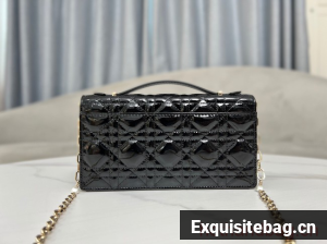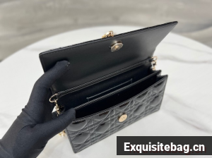 The Miss Dior mini bag expands the line with an elegant and functional design. Crafted in black Cannage lambskin, it features a flap enhanced by a D.I.O.R. charm on the front. Equipped with compartments and card slots, the functional accessory holds all the essentials and is the ideal day and evening companion. A top handle completed by a removable chain punctuated with resin pearls allows the bag to be carried by hand or worn crossbody. Front D.I.O.R. charmFlap closureTwo interior compartmentsRear patch pocketThree card slotsLeather top handleRemovable jewel chainMade in ItalyDimensions: 21 x 11.5 x 4.5 cm / 8.5 x 4.5 x 2 inches (Length x Height x Width)The size is suitable for a phone, a card holder and lipstickChain length: 110 cm / 43.5 inchesChain drop length: 53 cm / 21 inchesWeight: approximately 385 g / 13.5 ouncesReplica Dior Comes with serial numbers, authenticity card, dust bag and care booklet.