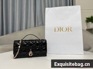 :: MISS DIOR MINI BAG Patent Cannage Calfskin S0980O black