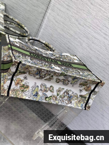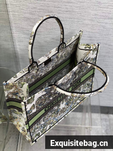 :: LARGE DIOR BOOK TOTE green Butterfly Around The World Embroidery M1286ZES