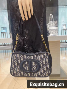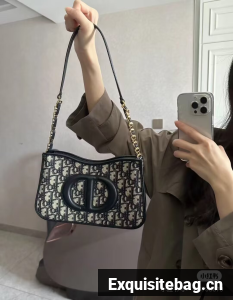 New for Winter 2023, Maria Grazia Chiuri"s CD Signature hobo mini bag has retro appeal. Crafted in blue Dior Oblique jacquard, it is distinguished by an embossed CD signature on the front that showcases the House savoir-faire. Thanks to the chain interlaced with leather, the elegant bag can be worn over the shoulder.