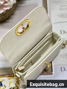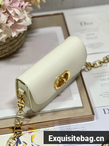 The 30 Montaigne Avenue bag enhances the hallmark line with a timeless and elegant small format. Crafted box calfskin, the rounded flap with delicate curves is punctuated by an antique gold-finish metal CD twist clasp inspired by the seal of a Christian Dior perfume bottle. The design is completed by other details, like the 30 Montaigne signature embossed on the back and the signature chain alternating gold-finish metal and tonal enamel links that match the leather. The small, gusseted bag features a refined silhouette that can be carried by hand, worn over the shoulder or crossbody.