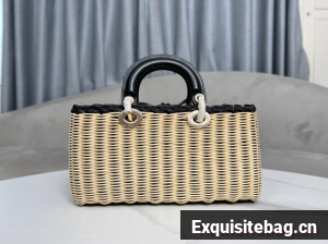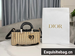 :: MEDIUM LADY D-JOY BAG Natural Wicker and Blue Dior Oblique Jacquard M0540O