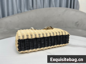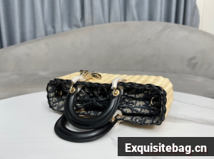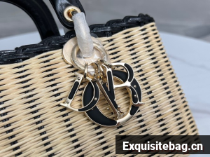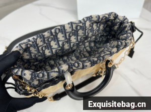 MEDIUM LADY D-JOY BAG Natural Wicker and Blue Dior Oblique Jacquard M0540O