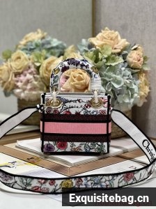 :: MINI LADY DIOR BAG White Multicolor Florilegio Embroidery M0505OW