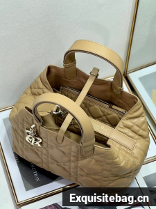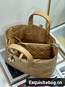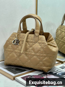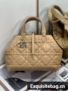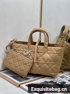 Unveiled at the Spring-Summer 2023 fashion show, the Dior Toujours bag is distinguished by a casual and practical design. Crafted in latte calfskin with Macrocannage topstitching, it showcases a spacious interior compartment with a matching pouch to organize essentials. Its leather strap closure keeps items secure while the D of the CD Lock closure twists to adjust the sides and enhance the bag"s silhouette. The leather handles can be adjusted using the small notches in order to be able to carry the medium bag by hand or wear it over the shoulder.