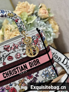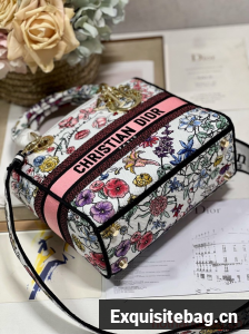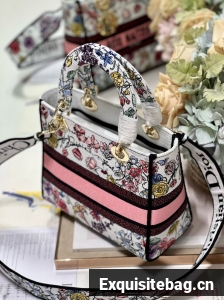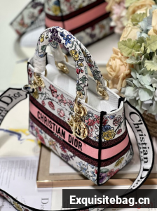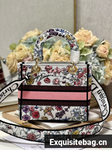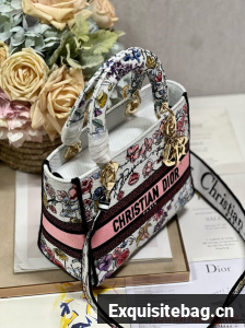 MEDIUM DIOR LADY D-LITE BAG White Multicolor Florilegio Embroidery M0565